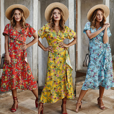| ハイライト: | ポリエステルによって印刷される女性マキシの服,党短い袖の女性マキシの服 |